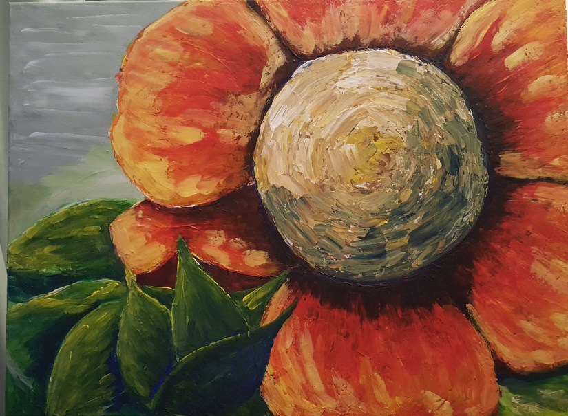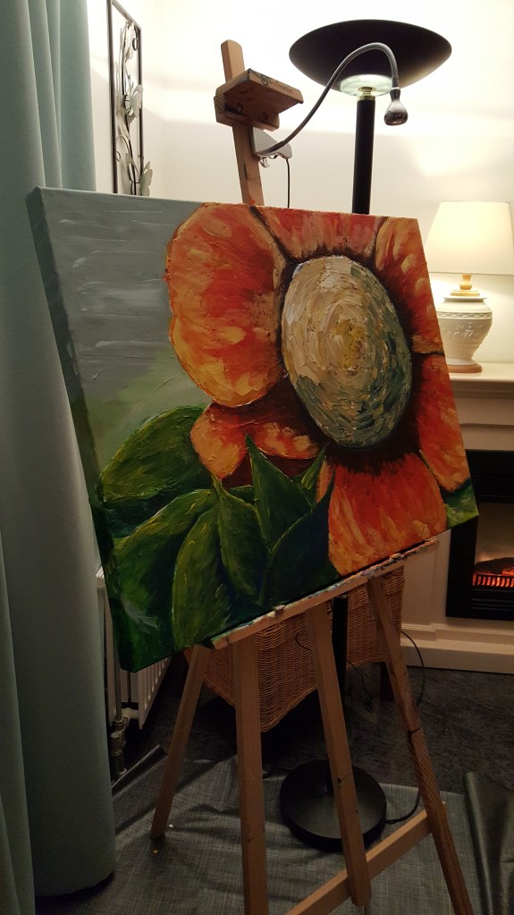 Vanavond nog even rode verf halen voor de blaadjes van de bloem. Nu vind ik hem mooi!