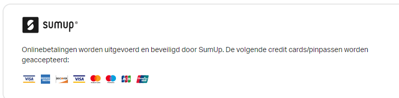Via de webshop uitbesteed aan SUMUP via de beveiligde pagina met URL: https://eendje-klein.sumup.link/