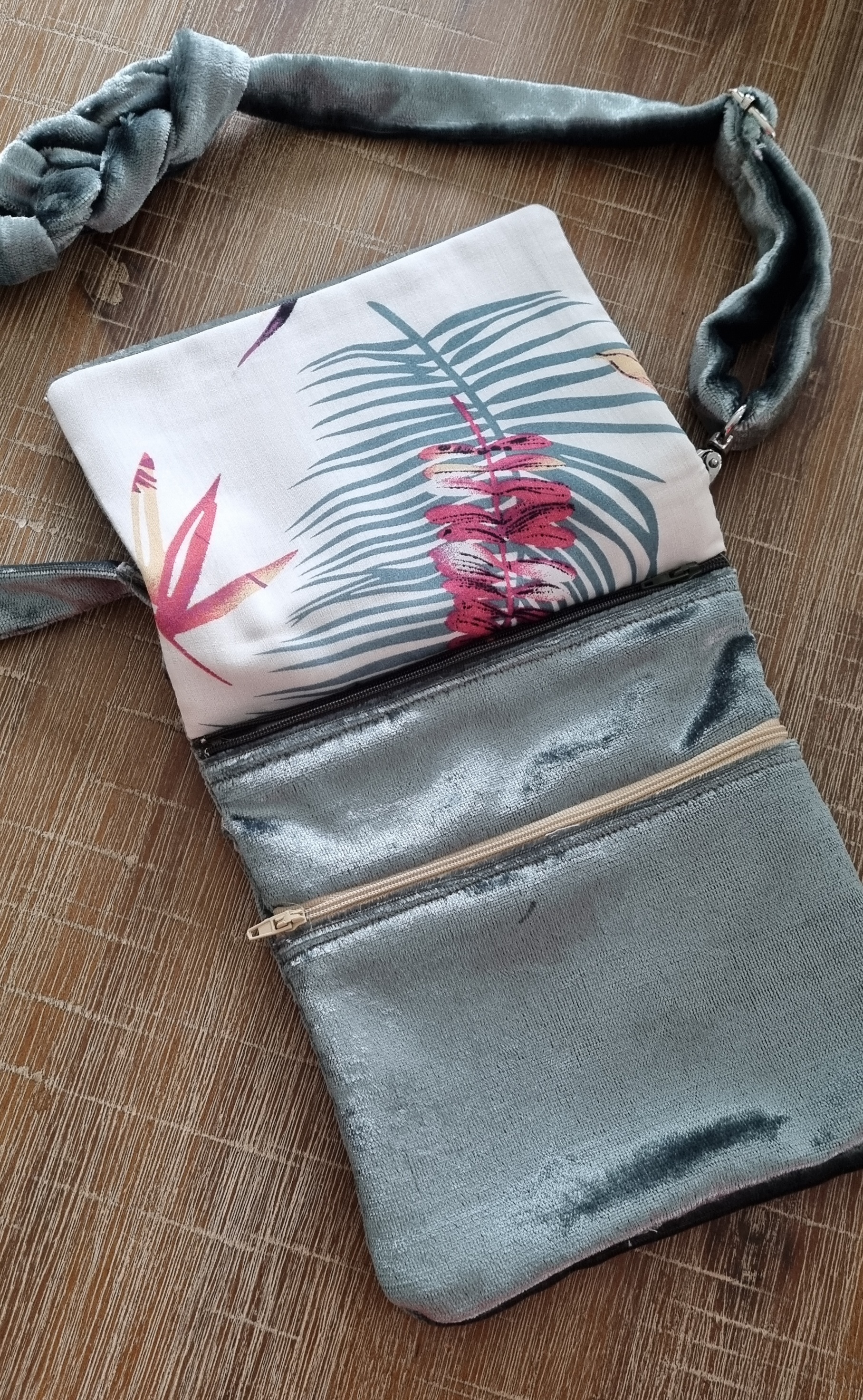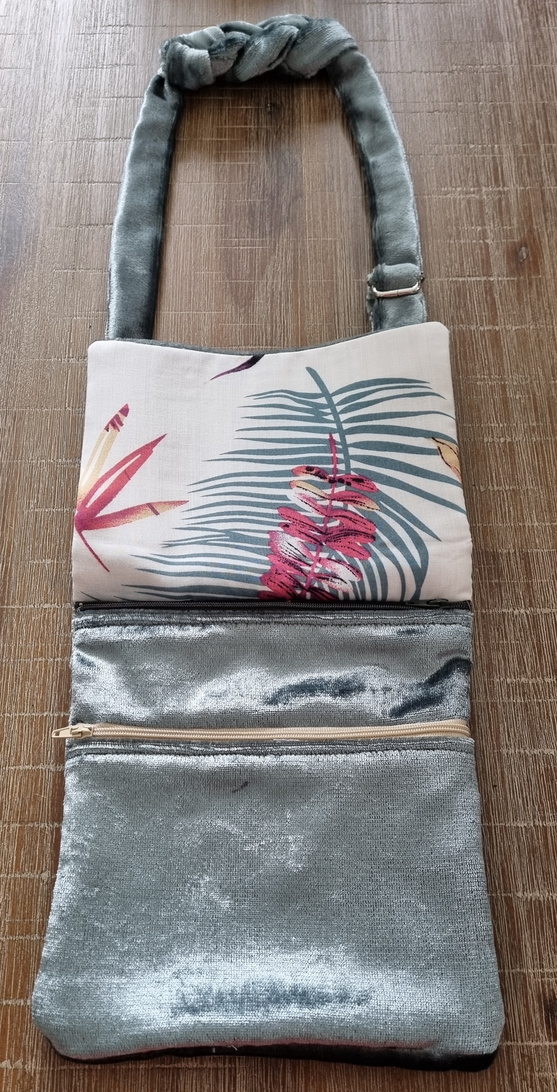 Basisuitvoering: Velours tasje met twee ritsen en gebloemde voering. Zonder gespen. Let op, deze uitvoering is niet op maat te maken. Prijs €24.