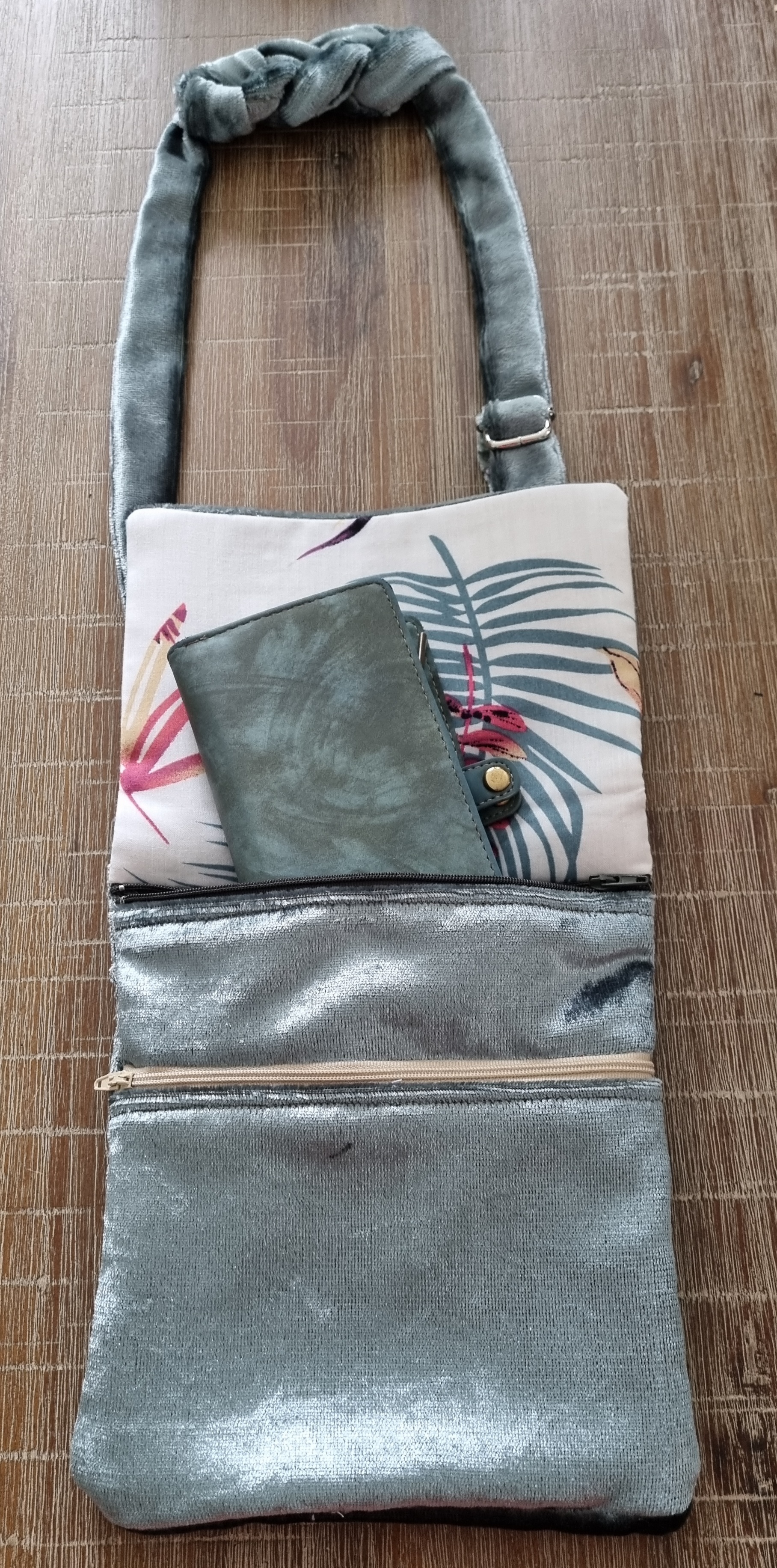 Velours tasje met extra gespen, zoals getoond, maar zonder borduring Prijs €30