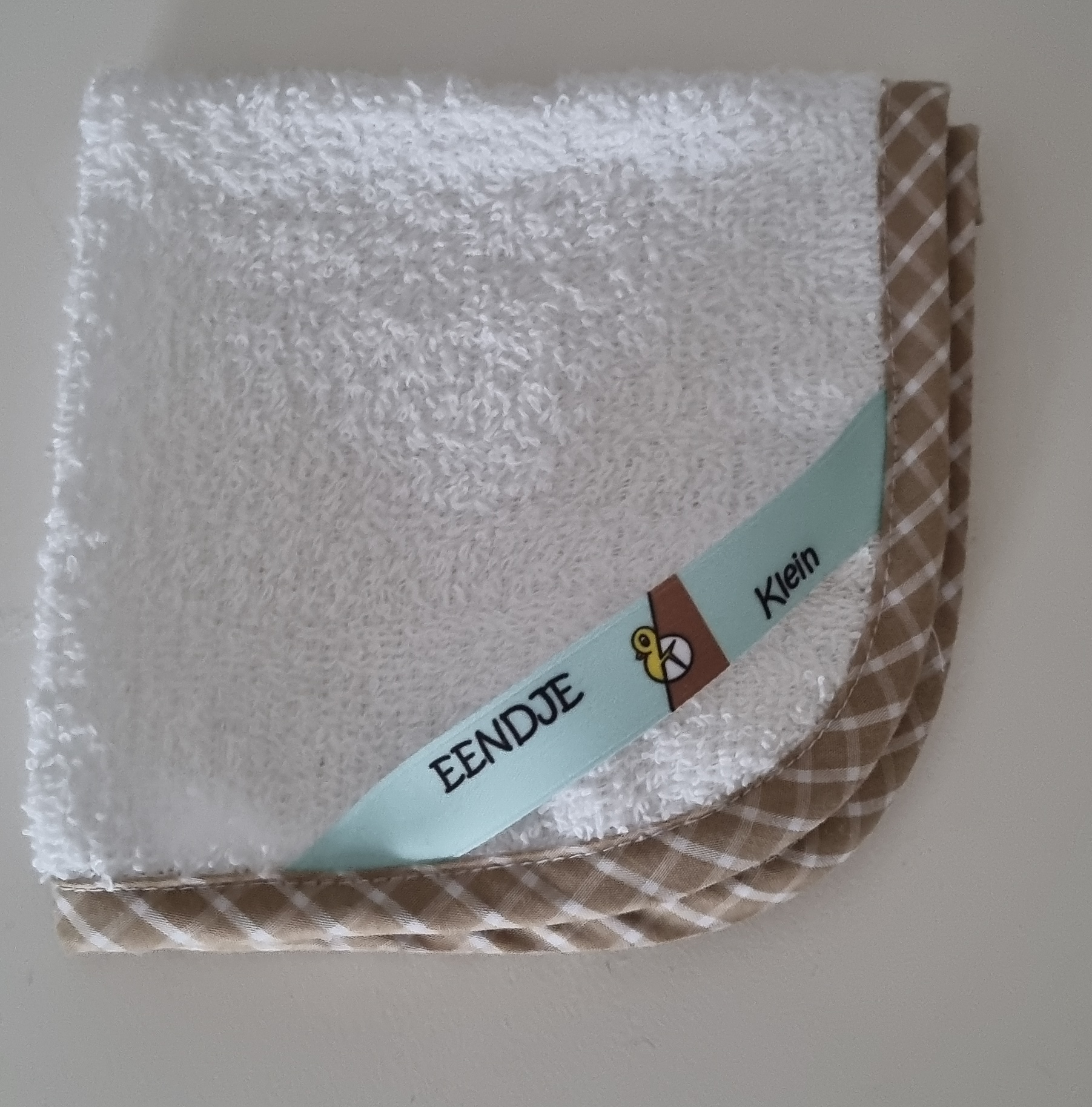Kleur: wit- mintgroen met beige bruin geruite bies.