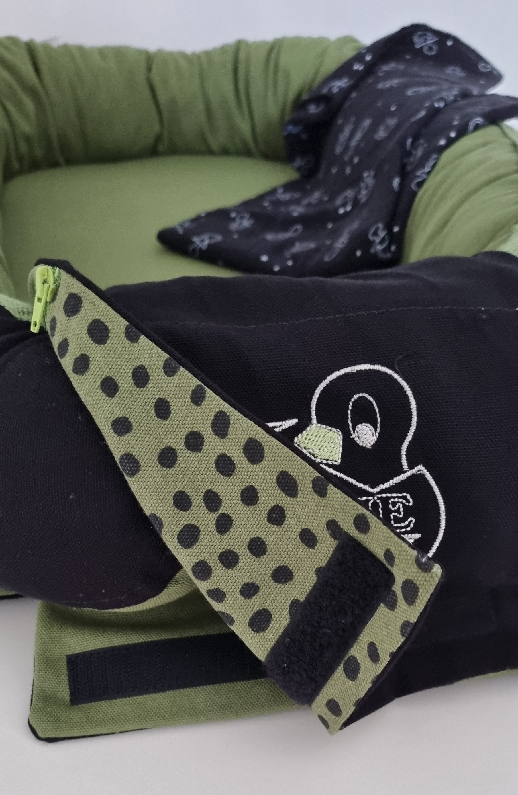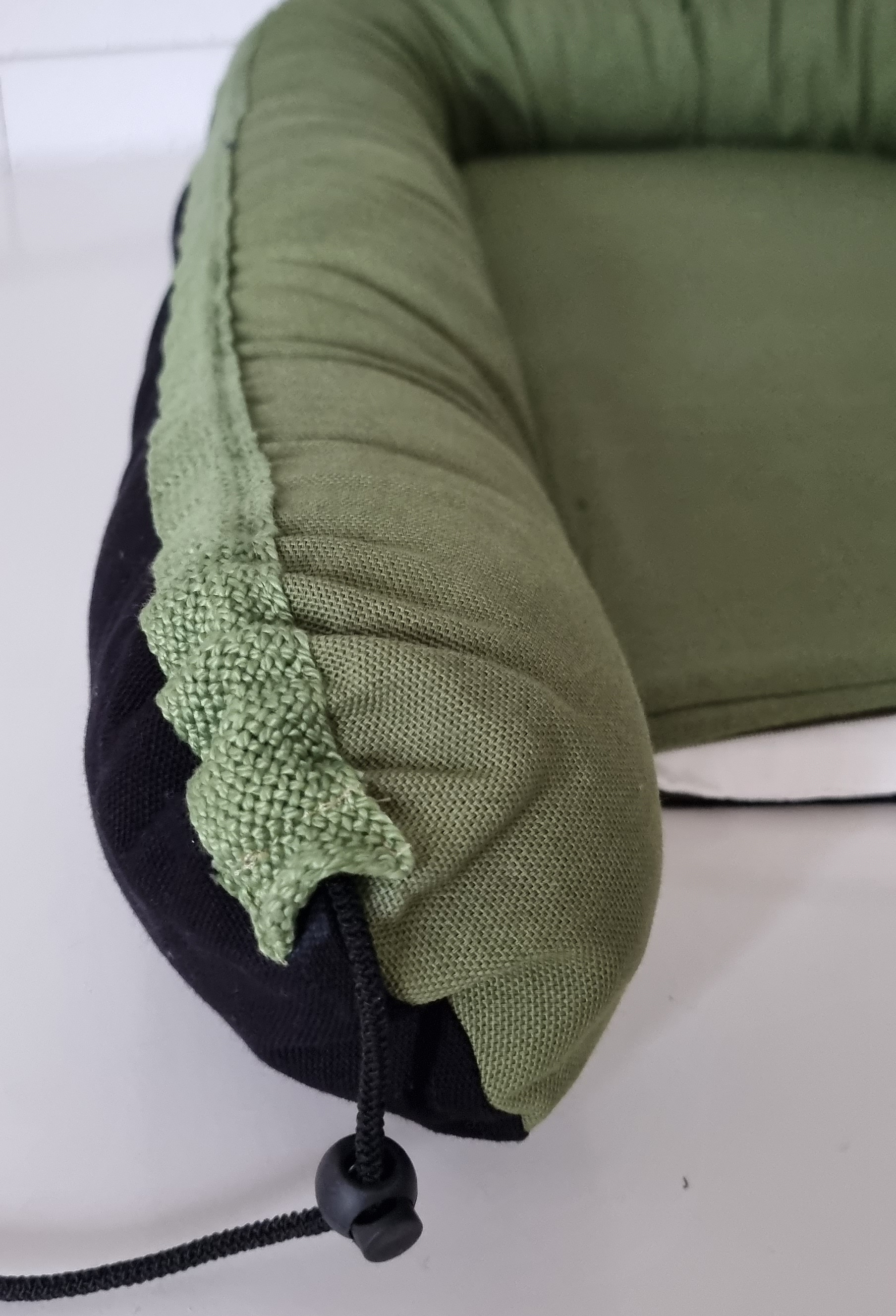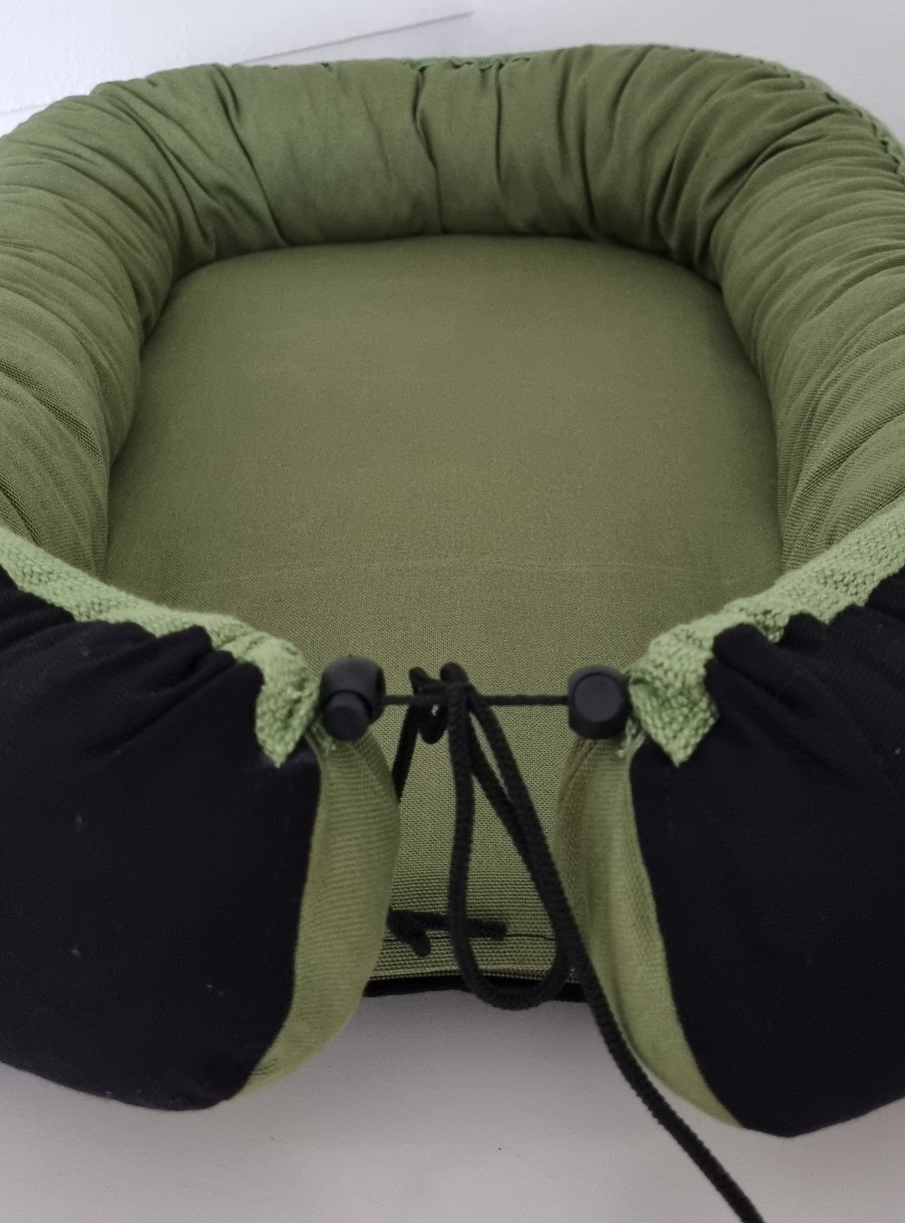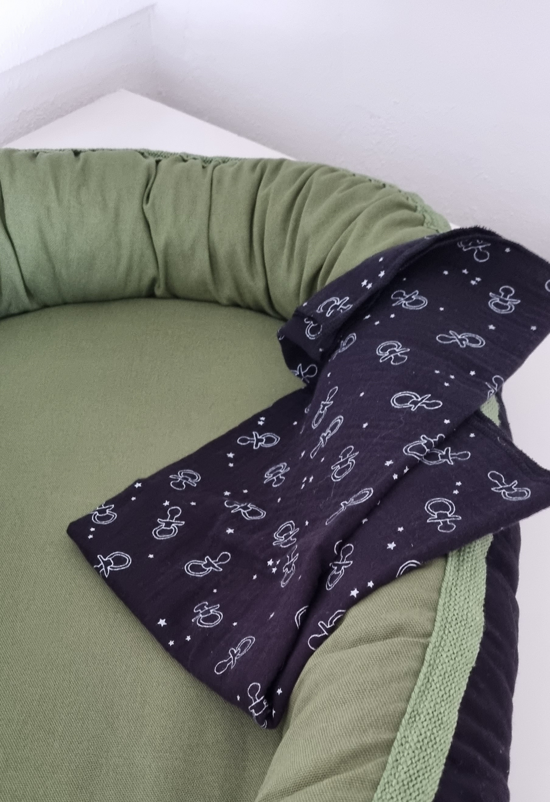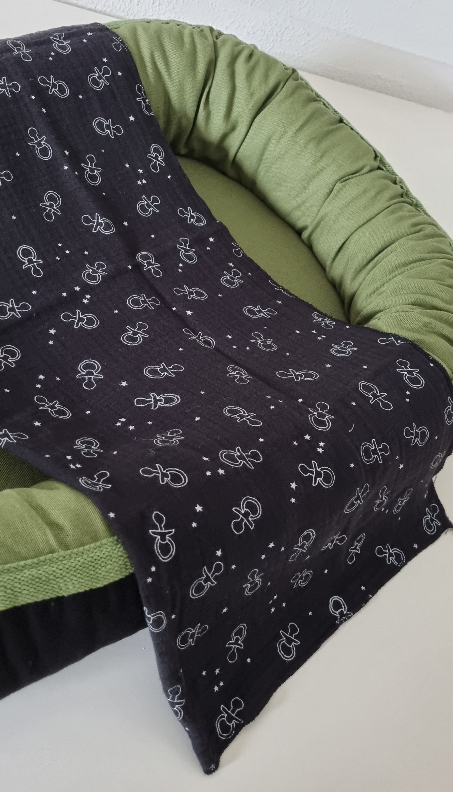 Exclusief uniek babynestje gemaakt op de naaimachine – aan twee zijden te gebruiken.