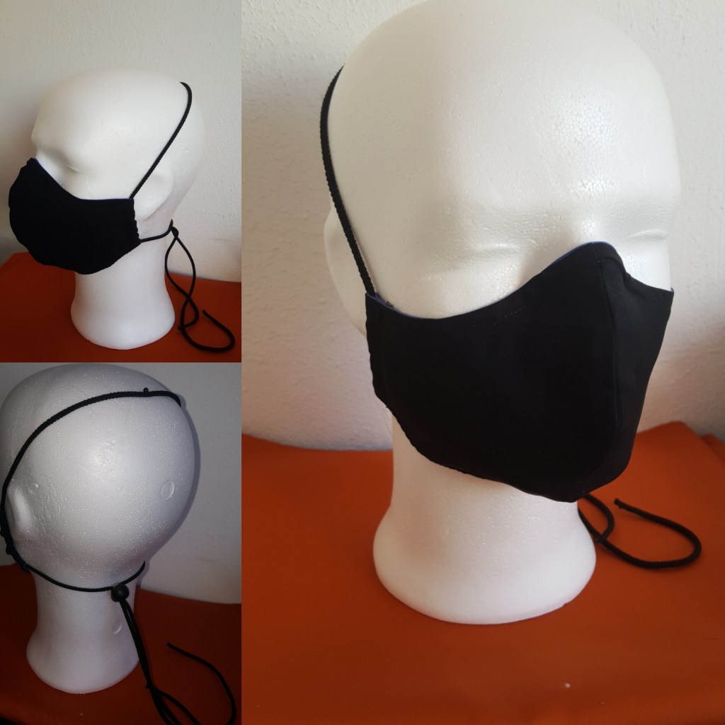 Geen elastiek meer achter de oren, maar bevestiging op het hoofd en achterin de nek. Door middel van een koordstopper vast te zetten.