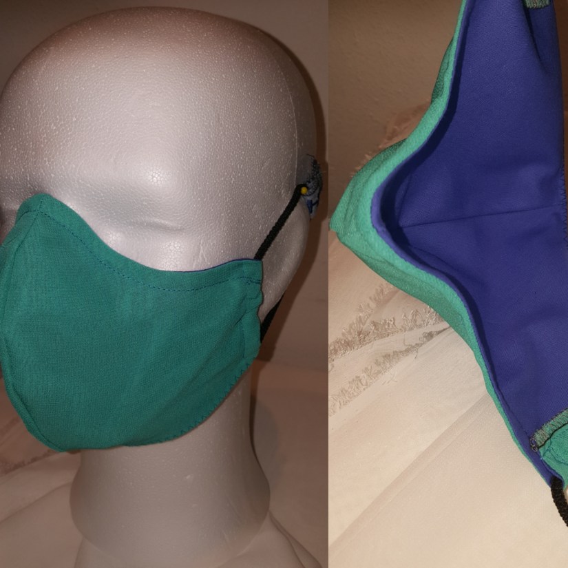 Buitenzijde donker blauw dubbel laags chiffon. Binnenzijde mintgroen katoen.