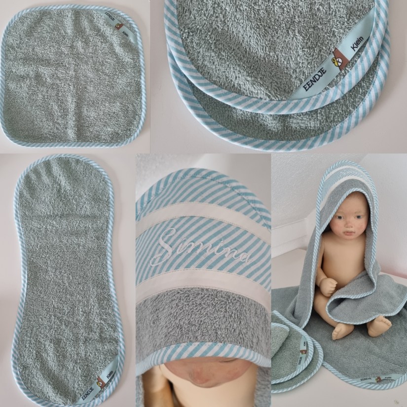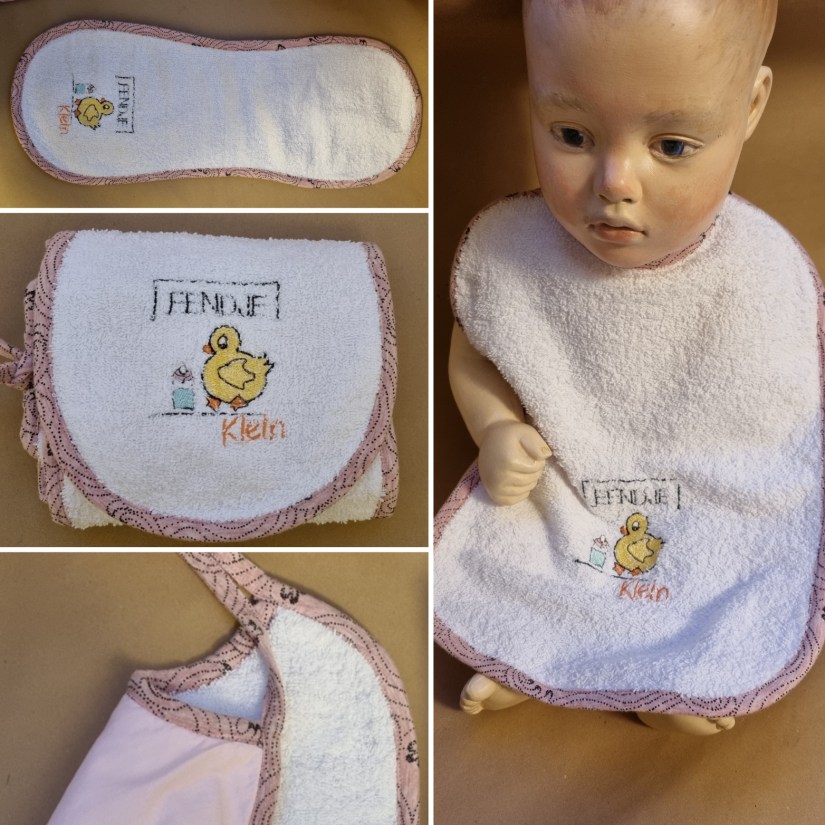 Vanochtend begin ik aan de nieuwe babyset met badcape. Uiteindelijk ben ik best tevreden met het resultaat. Bovenop borduur ik de naam. Zal ze het mooi vinden?