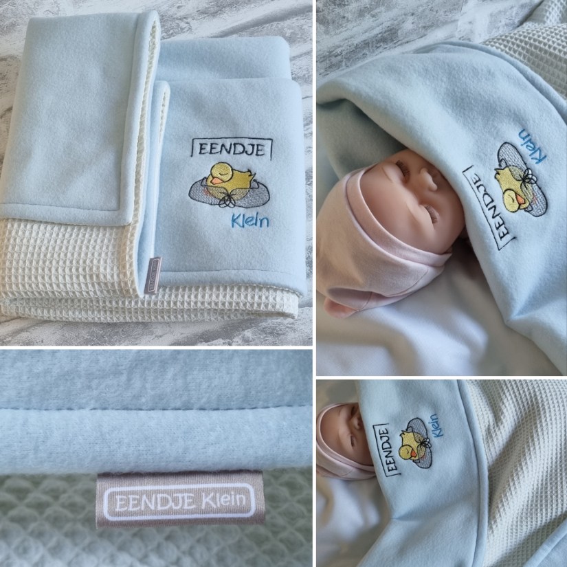 Vandaag maak ik een nieuw babydekentje (75x100cm). Het dekentje is van wafelstof en noppenfleece. Als voorbeeld zie je de namen Luuk en Emma, maar alle namen zijn nog mogelijk. Leuk als kraamcadeau.