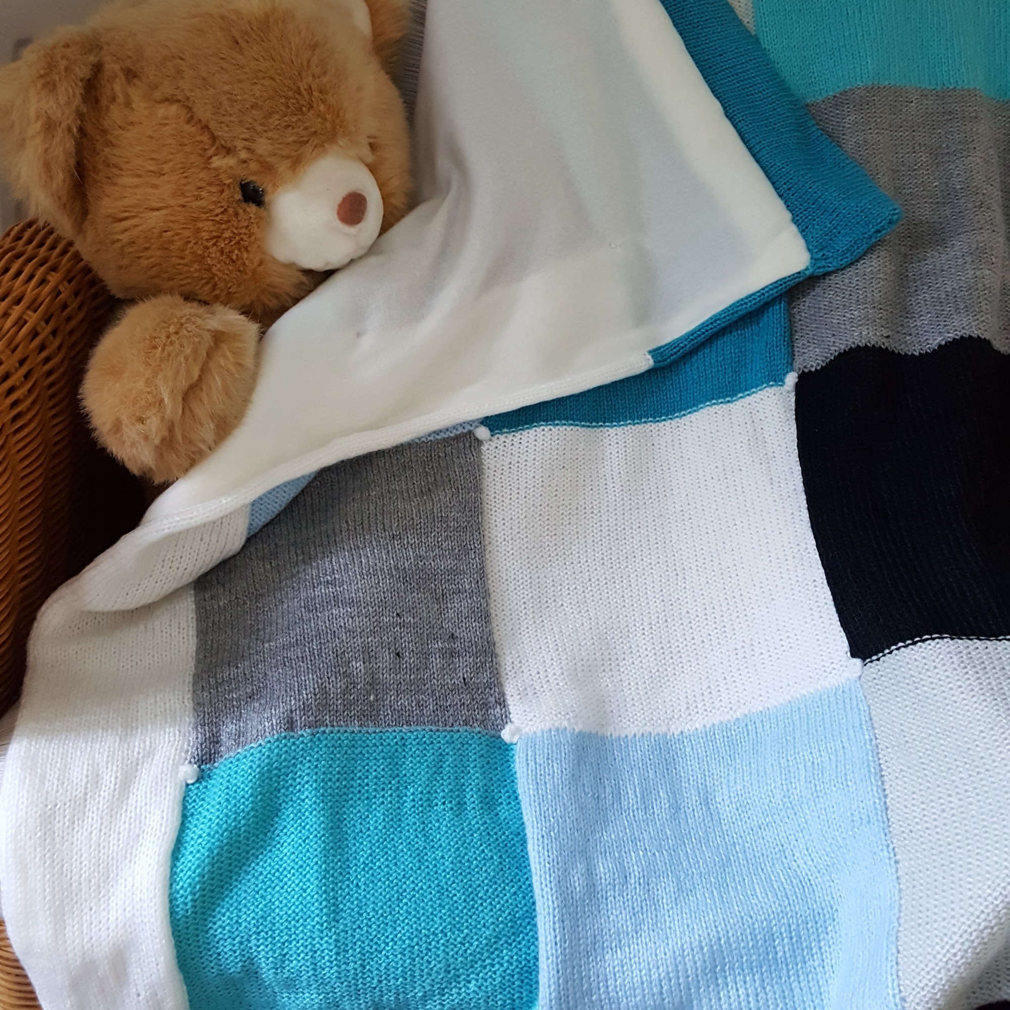 Nieuw in het assortiment; babydekentje van heerlijk zachte kabelstof gevoerd met witte Teddy. Leuk om te geven, maar ook om te krijgen!